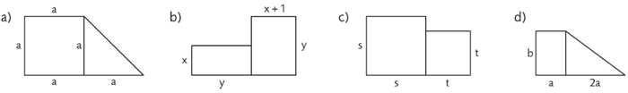 Für den Flächeninhalt der zusammengesetzten Figuren sind jeweils 2 Formeln angegeben. Klicke die richtige Gleichung an!