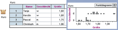 Geschlechtergetrennte Größenverteilung im Punktdiagramm
