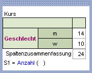 | numerische Standardauswertung: | Anzahl (abs. Häufigkeit) | ||