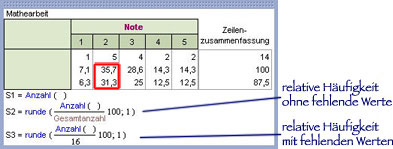 Mit „fehlenden Werten”: Etwa 31,3%5/16 ≈ 31,3% aller Schüler in der Klasse haben die Note 2 erhalten.